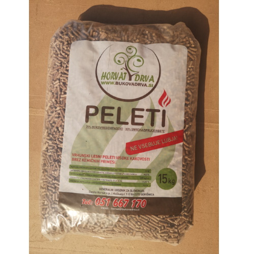 Visoko kakovostni Mešani Horvat peleti so narejeni iz 70% bukve in 30% smreke brez dodatnih primesi. Primerni so za kurjenje v peletnih pečeh in v kotlih na pelete. Način skladiščenja lesnih peletov bistveno vpliva na njihovo kakovost, zato pri nas pelete hranimo v suhem skladišču.